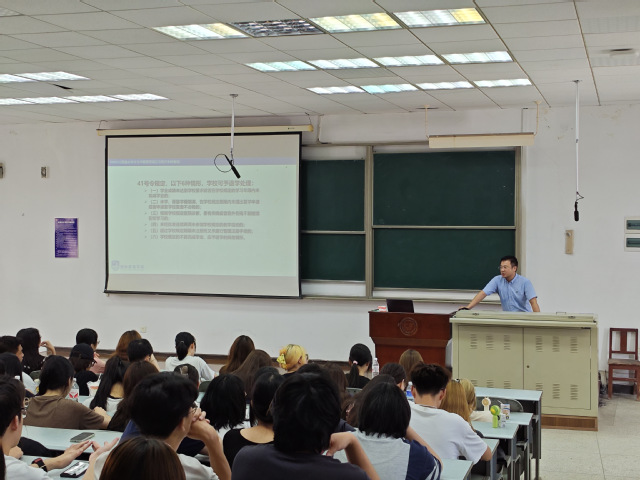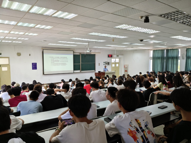为指导和帮助我院2024级新生明确大学学习目标,合理规划学习生活,做好学业规划,快速适应大学学习,促进学风建设。9月2日在3号教学楼302教室,学院面向全体2024级新生召开新生入学教育板块教学管理制度专题大会,主讲人为学院副院长靳洪。