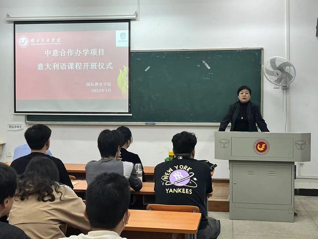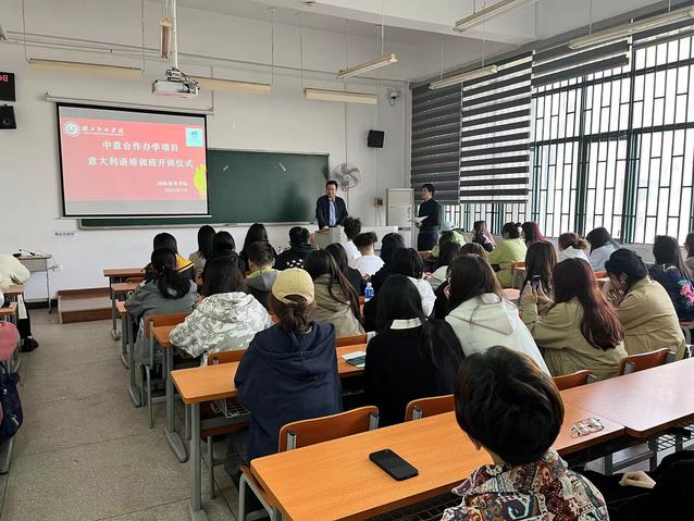 院长何明霞在致辞中介绍了开设意大利语培训班的意义旨在为中意项目学生提供高质量的受教育经历,为学生学业的进一步提升提供更好的便利条件,助力学生成就梦想。强调了通过优质的教学活动,学生能高质量的成长、意方教学资源能全方位的引进,打响学院国际教育的品牌,培养既扎根本土,又具备国际竞争力的复合型设计创新人才,实现三有三实人才培养目标。同时希望同学们提高认识,珍惜机会,认真参训,全面提升。