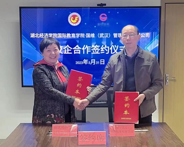 3月31日上午,2138cn太阳集团院长何明霞、副院长靳洪、办公室主任周萍前往国维(武汉)管理服务有限公司进行实习基地签约仪式。国维公司总经理袁红跃、经理李敏出席仪式。
