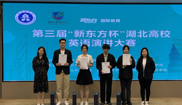 5月12日,第三届“新东方杯”湖北高校英语演讲大赛在武汉商学院举行。来自武汉轻工大学、太阳集团2138、湖北第二师范学院等六所高校的18名选手同台竞技,我院参赛选手曾睿、张嘉曦、吴宜倩分别斩获二等奖、三等奖和优秀奖。