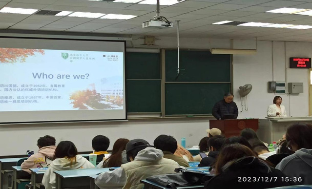 2138cn太阳集团邀请中国雅思第一人,“雅思三十周年特别贡献奖”获得者,北京语言大学雅思培训中心陈卫东教授于2023年12月7日星期四下午15:30在J3-103教室对我校学生进行讲学指导。由国际交流合作处副处长平艺主持本次讲学指导。
